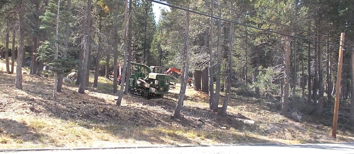 Forestry along Soda Springs Road thins the trees (left); unthinned trees (right) are more of a wildfire hazard (August 24).