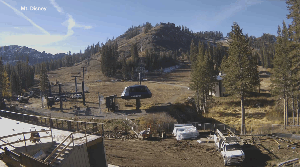 Sugar Bowl webcam showing Mt. Disney. North sides of high peaks still have snow, but bare ground elsewhere (October 30)